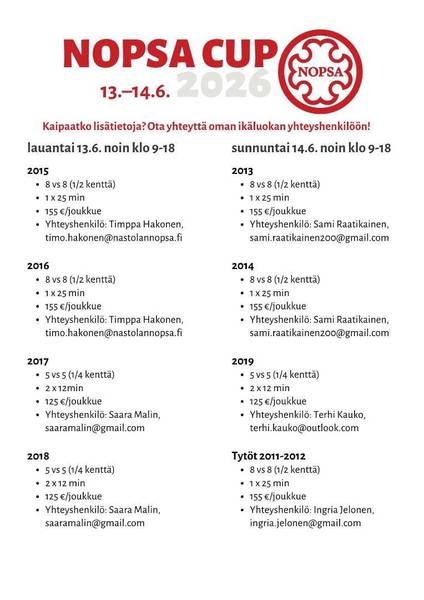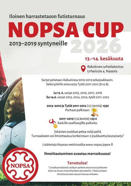 | 09.11.2025 15.20 | Nopsa Cup 2026 - ilmoittautuminen on nyt auki |